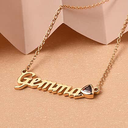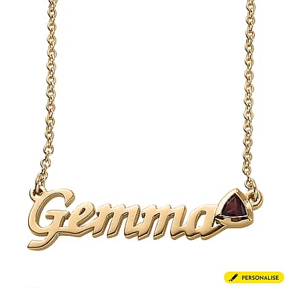 Personalised Garnet Gemstone Name Necklace in Brass, Font- Script MT Bold