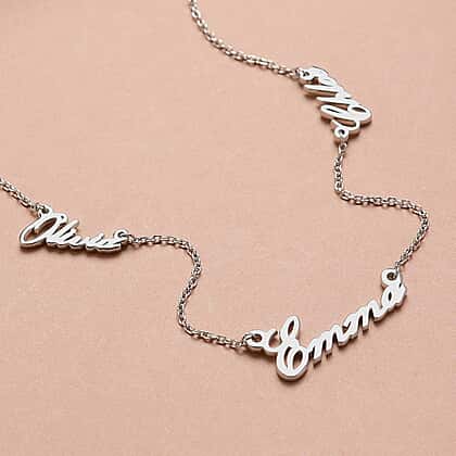 Personalised Three Names Necklace in Silver SIze 20", Font - Freehand521 BT
