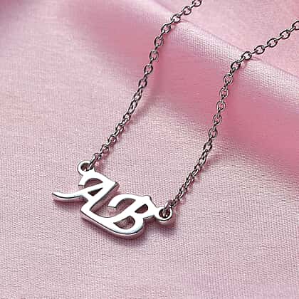 Personalised Two Initial Couple Necklace in Silver, Size 18-2 Inch, Font - Italic