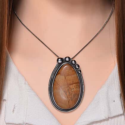 Picture Jasper Pear Necklace (Size - 24 - 4 Ext) 50.00 Ct.