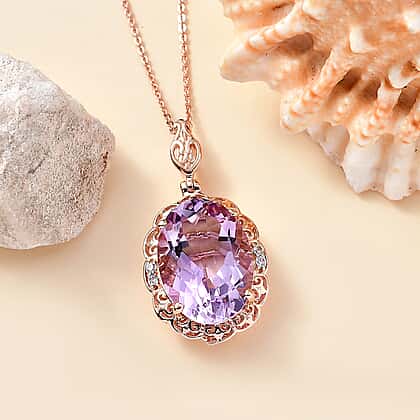Pink Amethyst & White Zircon Pendant with Chain (Size 20) in 18K Vermeil Rose Gold Plated Sterling Silver 11.62 Ct.