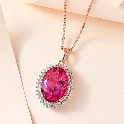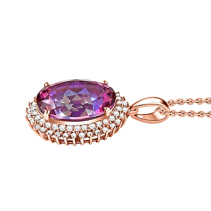 Pink Mystic Topaz & White Topaz Halo Necklace (Size-20) in 18K Rose Gold Vermeil Plated Sterling Silver 12.31 Ct, Silver Wt 6.00 GM