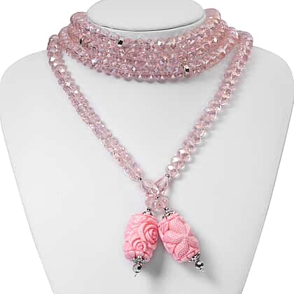- Coiling around your neckline like a snake, the pink glass beads of the necklace give a feminine look to your attire
