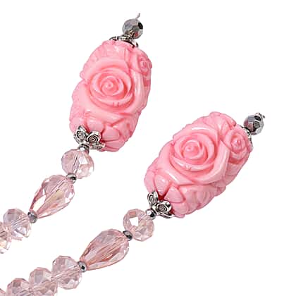 - Large pink shell beads on the ends are offered a sculptural touch with the intricate carving