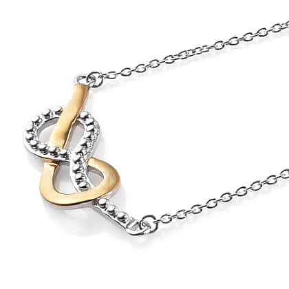 Infinity Knot 18 Inch Necklace in Platinum and Gold Plated Sterling Silver