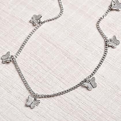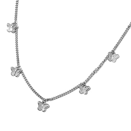 Platinum Overlay Sterling Silver Butterfly Station Necklace (Size 18), Silver wt 6.00 Gms