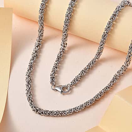Platinum Overlay Sterling Silver Byzantine Necklace (Size - 20), Silver Wt. 21.00 Gms