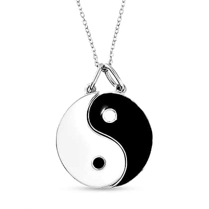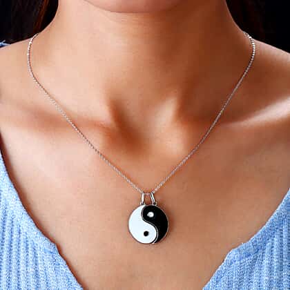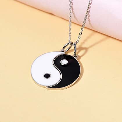 3 Piece Set Galentine Special - Yin Yang Pendant with Chain in Platinum Plated Sterling Silver, Wt. 6.14 Gms