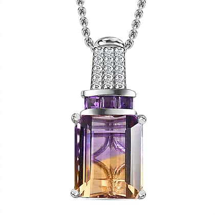 Premium Ametrine, Citrine and African Amethyst with Natural Zircon Pendant with Chain (Size 20) 6.72 Ct.