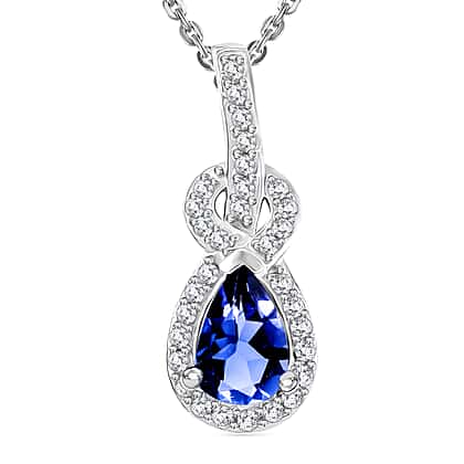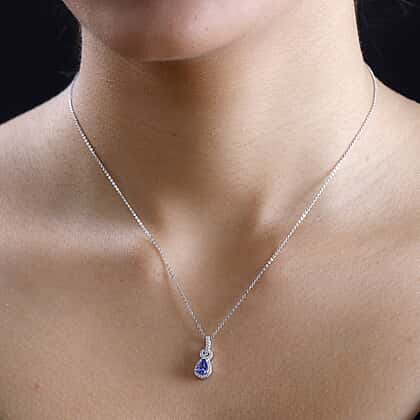 Premium Tanzanite & White Zircon Pendant with Chain (Size 20) in Rhodium Overlay Sterling Silver