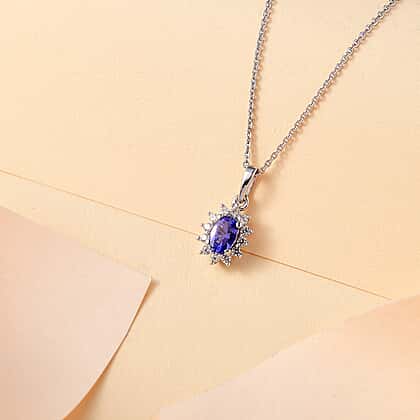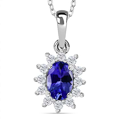 Premium Tanzanite & White Zircon Pendant with Chain (Size 20) in Rhodium Overlay Sterling Silver