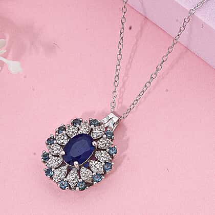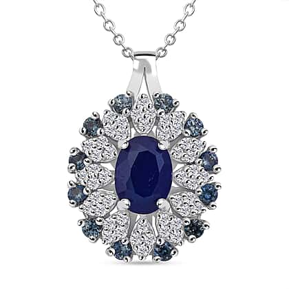 Premium Vietnamese Cobalt Blue Spinel, White Zircon & Blue Sapphire Pendant with Chain (Size 20) in Rhodium Overlay Sterling Silver 2.14 Ct.