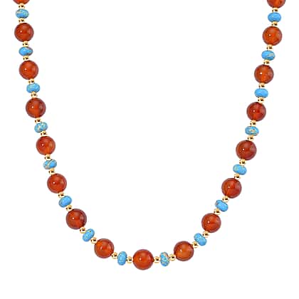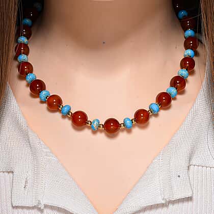 Pueblo Style Collection Launch - Ruby Agate & Blue Imperial Jasper Necklace (Size 18 - 2) in Yellow Gold Overlay 230.00 Ct.