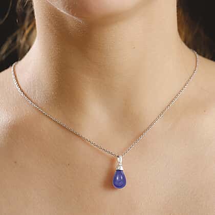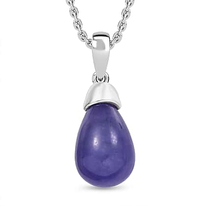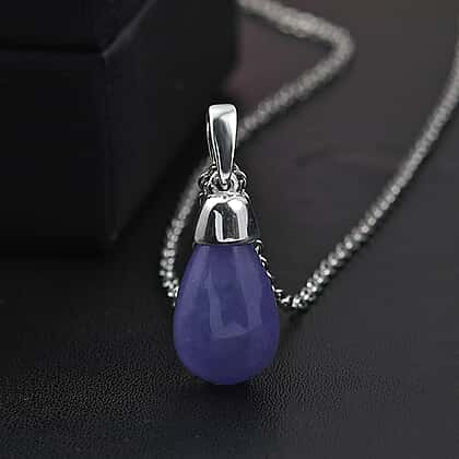 Purple Jade Pendant with Chain (Size - 20) in Sterling Silver 9.10 Ct.