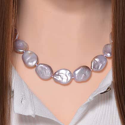 Purple Keshi Pearl Necklace (Size - 20) in Gold Overlay Sterling Silver with Magnetic Lock 325.00 ct
