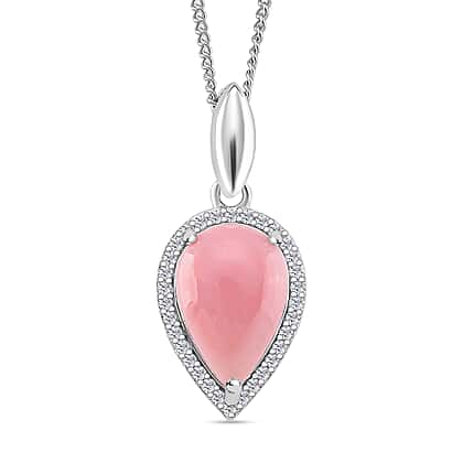 D'Joy Pink Conch Shell and Moissanite Halo Pendant with Chain (Size 18) with Lobster Clasp in Rhodium Overlay Sterling Silver 3.00 Ct