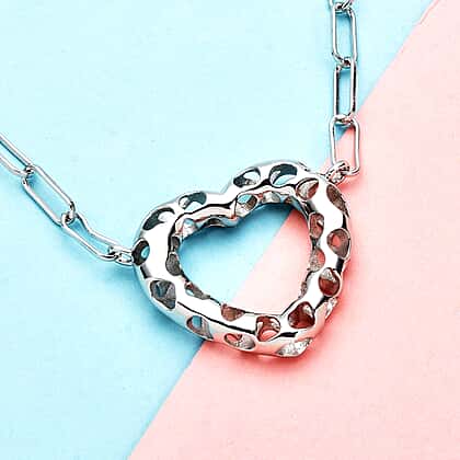 RACHEL GALLEY Amore Collection - Heart Paperclip Necklace Size 20 Inch in Rhodium Plated Sterling Silver, Silver Wt. 8.12 Gms
