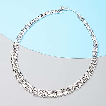RACHEL GALLEY Leaf Lattice Collection - Rhodium Overlay Sterling Silver Necklace (Size 18), Silver Wt. 33.71 Gms