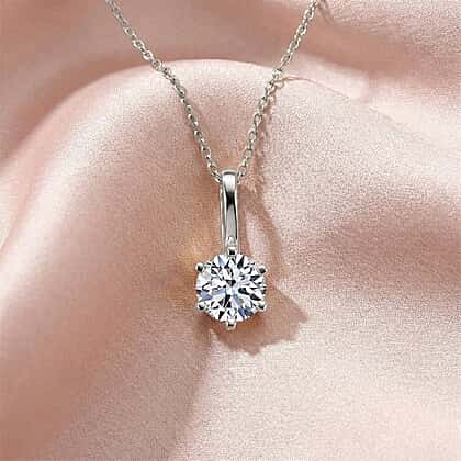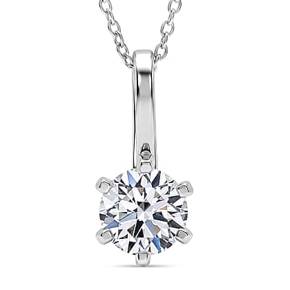 RACHEL GALLEY SGL Certified VS-EF Lab Grown Diamond Pendant with Chain (Size 20) in Rhodium Overlay Sterling Silver 1.00 Ct.