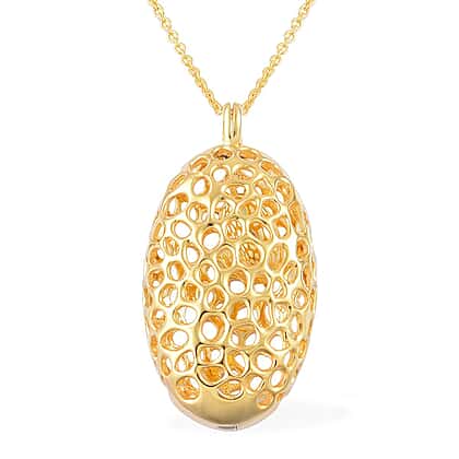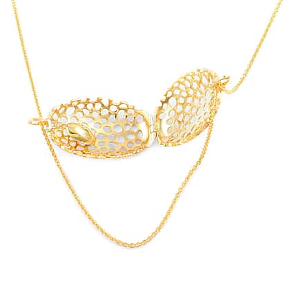 RACHEL GALLEY Yellow Gold Overlay Sterling Silver Charmed Pebble Locket Pendant with Chain (Size 30), Silver Wt 24.48 Gms.