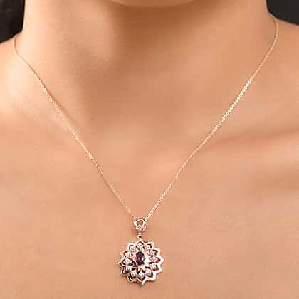 Radiant Ember Garnet & White Zircon Pendant with Chain (Size 20) in 18K Vermeil Rose Gold Plated Sterling Silver