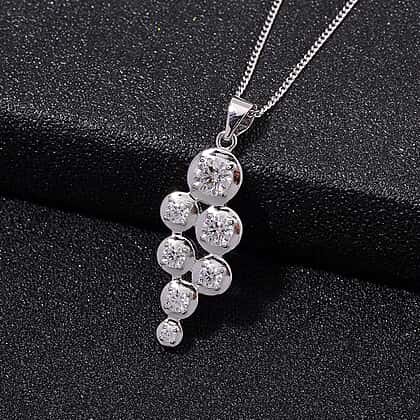 RADIANTA GRA Certified Moissanite D-VVS1 Pendant with Chain (Size - 18) in Rhodium Overlay Sterling Silver 1.16 Ct.