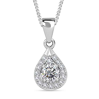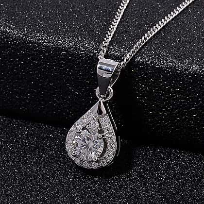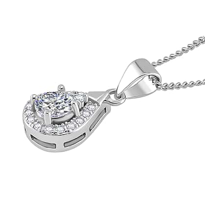 RADIANTA GRA Certified Moissanite D-VVS1 Pendant with Chain (Size - 18) in Rhodium Overlay Sterling Silver.