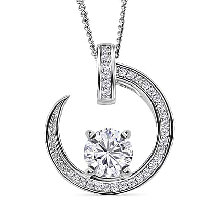 RADIANTA Moissanite - GRA Certified D-VVS1 Moissanite Pendant with Chain (Size 18) in Rhodium Overlay