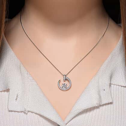 Grace meets symbolism in the GRA-certified moissanite crescent moon pendant with chain, a design inspired by the beauty of the night sky. The crescent moon cradles a brilliant round moissanite, celebrated for its diamond-like sparkle, vibrant fire, and impressive durability. Surrounded by delicate prong detailing, this pendant radiates elegance and charm. Moissanite is loved not only for its rarity but also for being a sustainable alternative to natural diamonds, offering the same brilliance at exceptional value. The tarnish-resistant rhodium overlay sterling silver ensures lasting shine, while the 18-inch chain makes it perfect for everyday or evening wear.