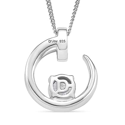 D'Joy RADIANTA GRA Certified Crescent Moon Moissanite Pendant with Chain (Size 18) in Rhodium Overlay Sterling Silver
