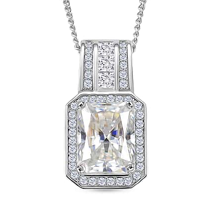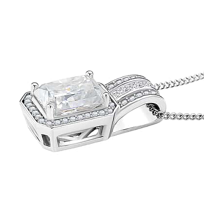 RADIANTA Moissanite - GRA Certified D-VVS1 Moissanite Pendant with Chain (Size 18) in Rhodium Overlay Sterling Silver 3.30 Ct, Silver Wt. 4.30 Gms.
