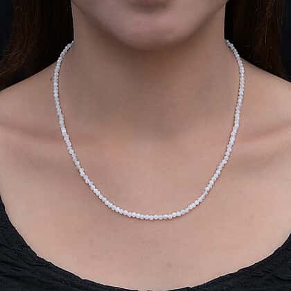 Rainbow Moonstone Beaded Necklace (Size 18) in Sterling Silver 24.68 Ct.