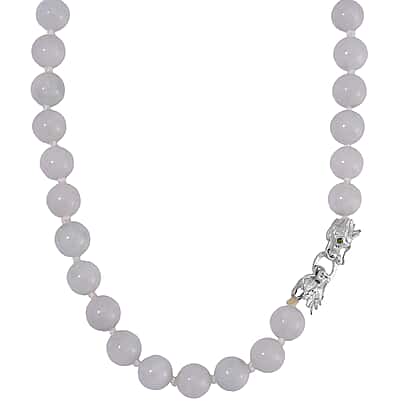 Rare 100% Natural Jadeite Jade, Chrome Diopside Necklace with Dragon Head Clasp (Size - 20) in Rhodium Overlay Sterling Silver 615.10 Ct