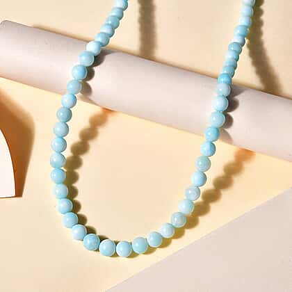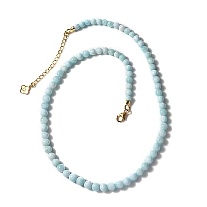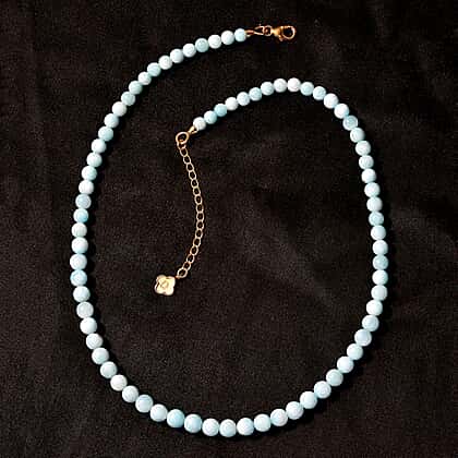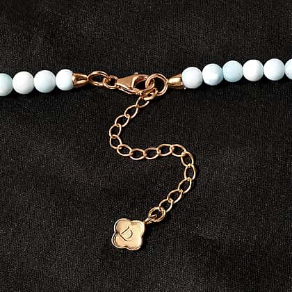 Adorn your neckline with the serene charm of this enchanting hemimorphite necklace. This 18-inch necklace features smooth and polished beads that captivate with their pale blue hues. Believed to have calming and balancing properties, the hemimorphite gemstone adds a touch of elegance and tranquillity to any outfit. Secured with a lobster claw clasp crafted in 18K gold vermeil over sterling silver, this 18-inch necklace is stylish and durable. Elevate your jewellery collection with this exquisite piece that combines beauty and sophistication.