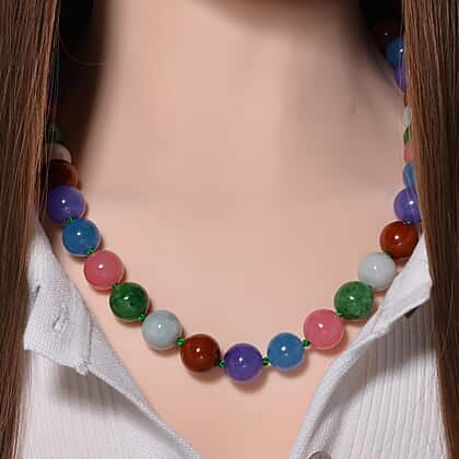 - Necklace with 32 Multi Colour Jade Beads of 12-14mm, Cabochon Cut