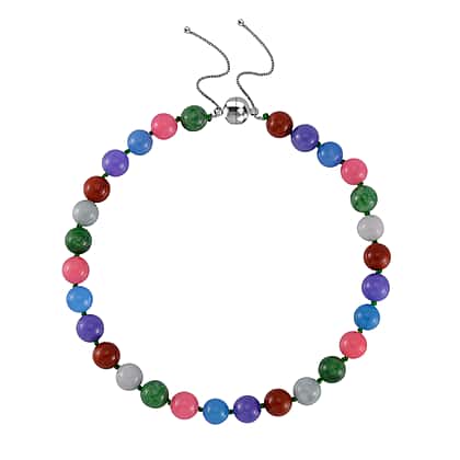Rare Size Multi Colour Jadeite Jade Beads Necklace (Size - 18 to 24 Inch) in Rhodium Overlay Sterling Silver 720.00 Ct