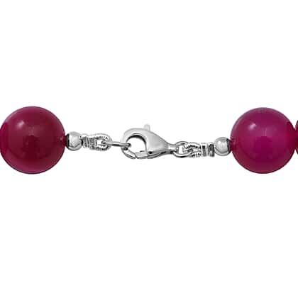 Red Colour Striped Agate Beads Necklace (Size - 20) in Rhodium Overlay Sterling Silver 250.00 Ct