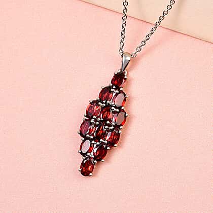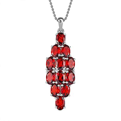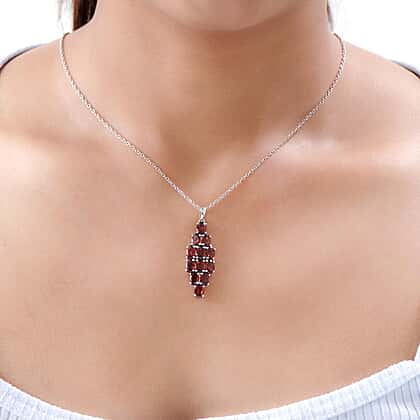 Red Garnet Cluster Pendant With Chain (Size 20) in Platinum Overlay Sterling Silver 5.00 Ct.
