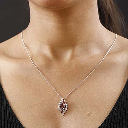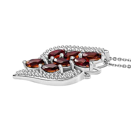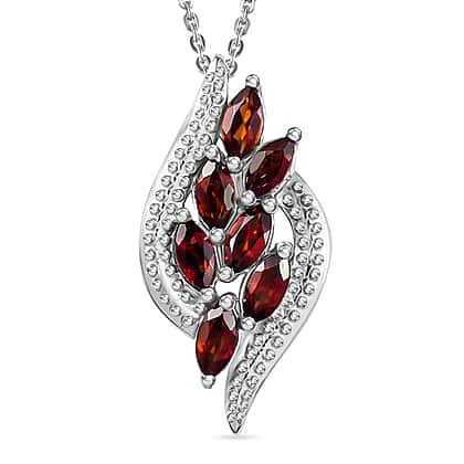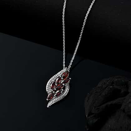 Red Garnet Pendant with Chain (Size 20) in Rhodium Overlay Sterling Silver Wt. 5.2 Gms 1.400 Ct.