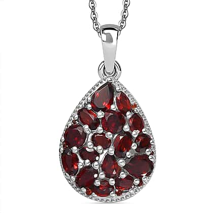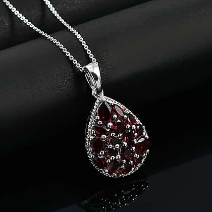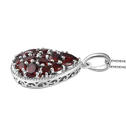 Red Garnet Pendant with Chain (Size 20) in Rhodium Overlay Sterling Silver 4.90 Ct, Silver Wt. 5.90 Gms.