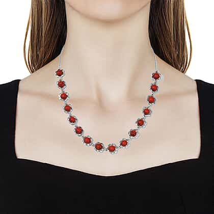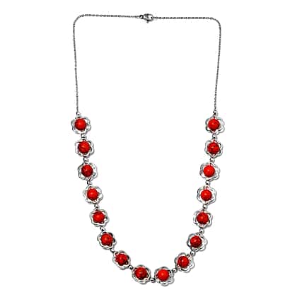 55.25 Ct Red Howlite Floral Necklace in Platinum Plated 20 Inch