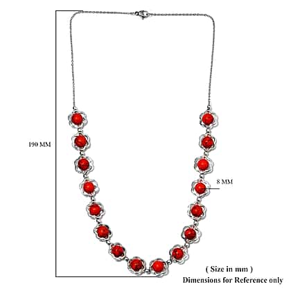Red Howlite (Rnd) Floral Necklace (Size 20) in Platinum Plated 55.25 Ct.