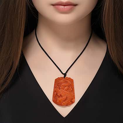 Red Jade Stone Dragon Necklace with Black Cord (Size 30 Adjustable) 210.00 Ct.