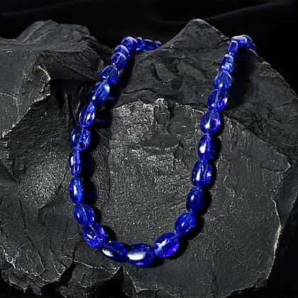 A perfect combination of design and colour, this AAAA-grade tanzanite necklace is a mesmerising piece with its deep oceanic blue and polished finish. The tanzanite gemstone is believed to have a symbolic association with wisdom and protection. The lobster clasp closure of this hand-selected beaded design necklace is crafted in hypoallergenic 950 platinum, ensuring quality and safety for sensitive skin. Additionally, with its impressive 143.80 carats of colourful beads, the piece is not just a piece of jewellery; it's an enduring heritage.
