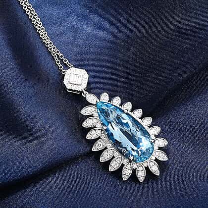 RHAPSODY 950 Platinum AGI Certified Santamaria Aquamarine & White Diamond Halo Pendant with Chain (Size - 18) 13.90 Ct.