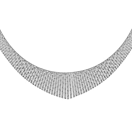 This exquisite sterling silver necklace features a classic graduated Cleopatra design that is sure to turn heads. A Cleopatra necklace is a type of necklace that features graduated bands of varying sizes. The design is said to be inspired by the ancient Egyptian queen Cleopatra, known for her love of jewellery and iconic style. The necklace is plated in rhodium for added shine and durability. The diamond cut finish adds a sparkling touch to the necklace, making it perfect for any occasion. In addition, the graduated design of the necklace gives it a unique and elegant look, making it perfect for layering or wearing alone. The necklace is an excellent gift for anyone who appreciates timeless and high-quality jewellery.