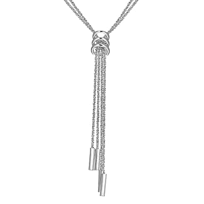 Sterling Silver Rhodium Plated Strand Tocalle Chain and Rings Necklace 17 Inch