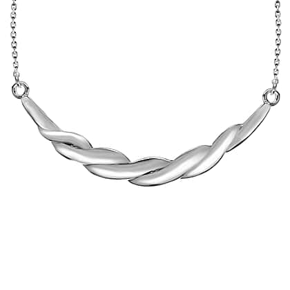 Sterling Silver Rhodium Plated Twist Bar Necklace 18 Inch