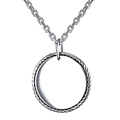 Sterling Silver Rhodium Plated 22mm x 26.5mm Twist Edge Disc Adjustable Necklace 20 Inch to 22 Inch