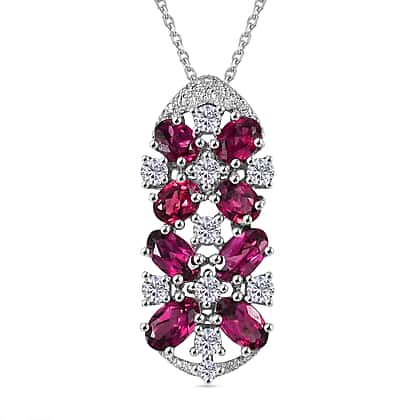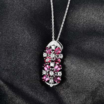 Rhodolite Garnet, White Zircon Pendant with Torn Chain 19DC (Size 20) in Platinum Overlay Sterling Silver 1.76 ct 2.760 Ct.
